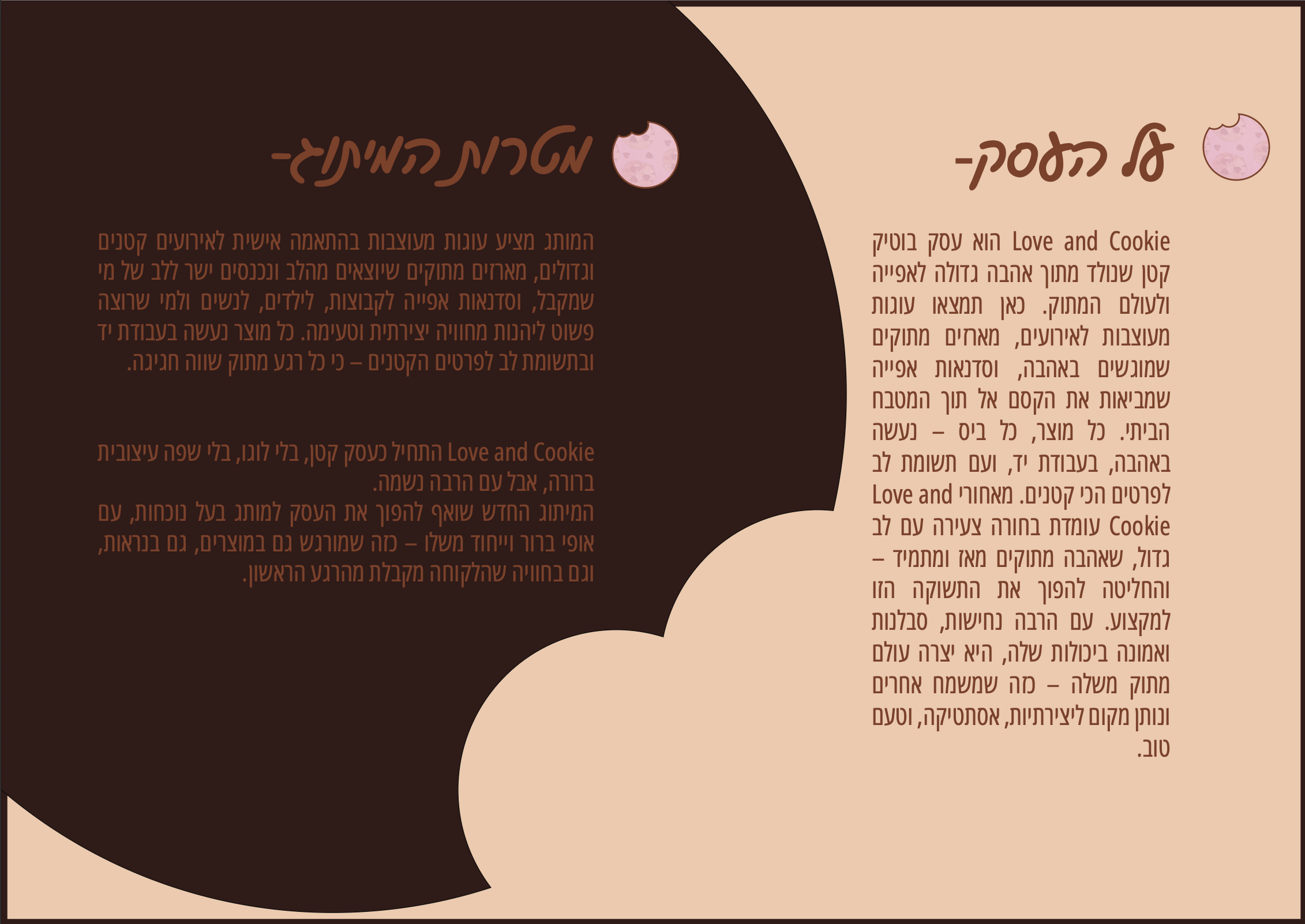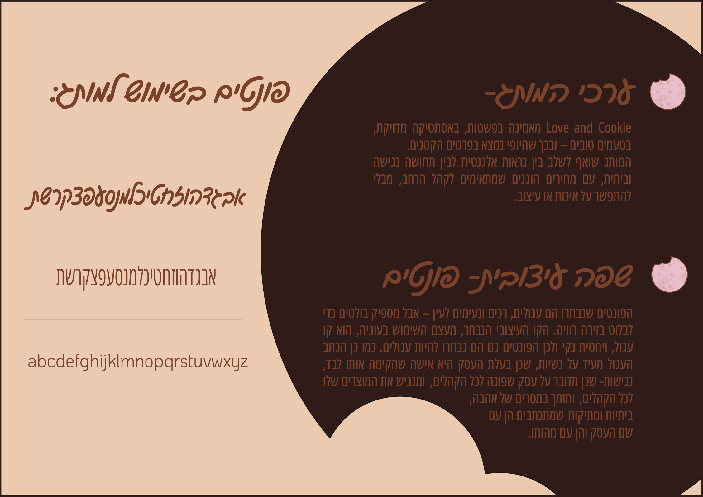 היי, אני אלמוג – מעצבת גרפית שחיה ונושמת צבע, פרופורציות וסגנון. אני מאמינה שעיצוב טוב מתחיל בהבנה עמוקה של מהות המותג, ושהפרטים הקטנים הם אלו שמייצרים את התחושה הגדולה.